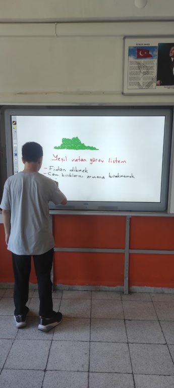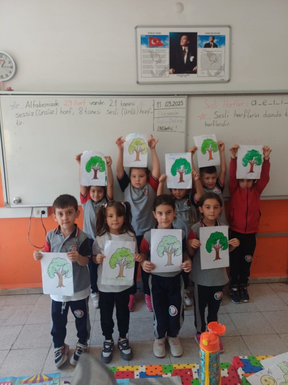 Okulumuzda öğrencilerimizle ilk derslerinde "Yeşil Vatan" kavramını tanımaları, doğa sevgisi ve çevreyi koruma bilincini pekiştirmeleri, ormanlar konusunda yapılan çalışmalara değer vermeleri ve sürdürülebilir bir yaşam için Yeşil Vatan'ın önemini fark etmeleri amacıyla farklı etkinlikler yapılmıştır.